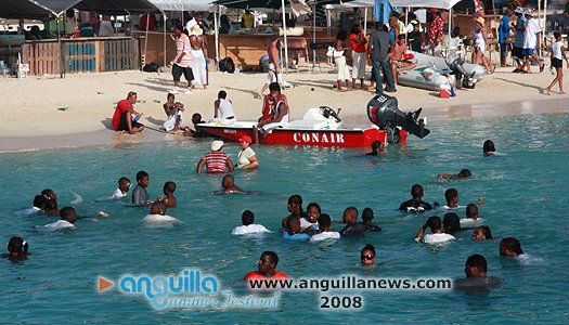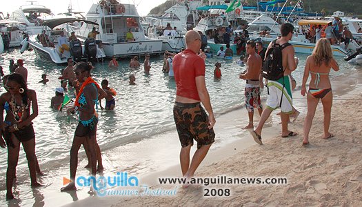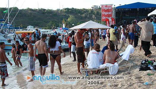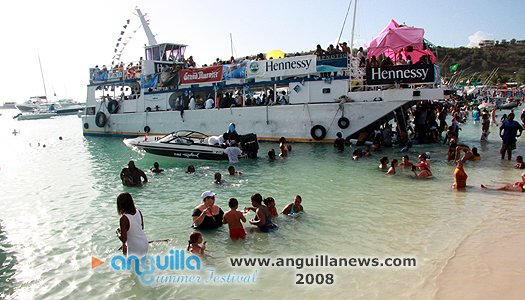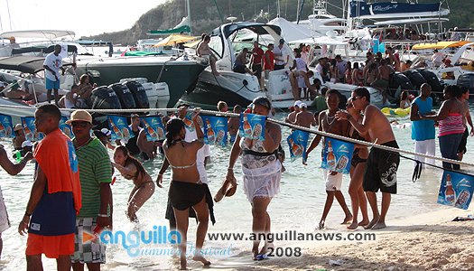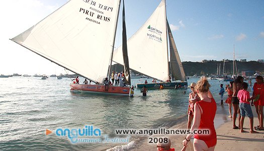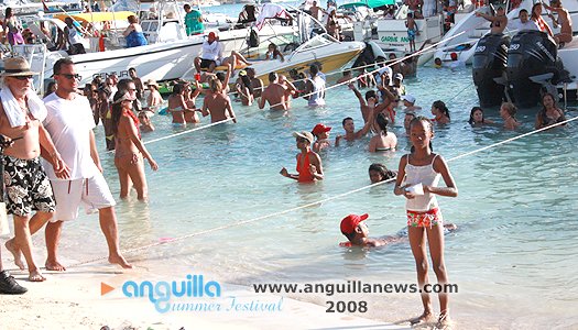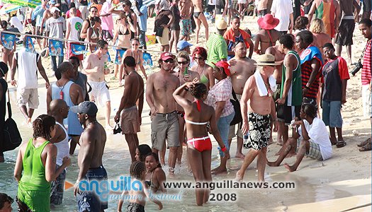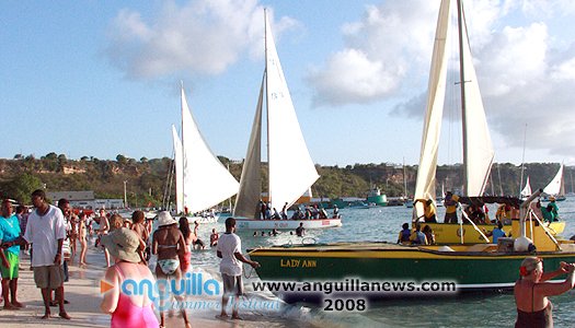 August Monday boatrace over the years has  turned into a St. Maarten/St. Martin celebration as much as it is Anguillian. Scores of people  come aboard yachts to join locals assembled on the beach in an afternoon of frolic,  social interaction and display. The afternoon is sandwiched between a morning of J'ouvert and an evening beach party.