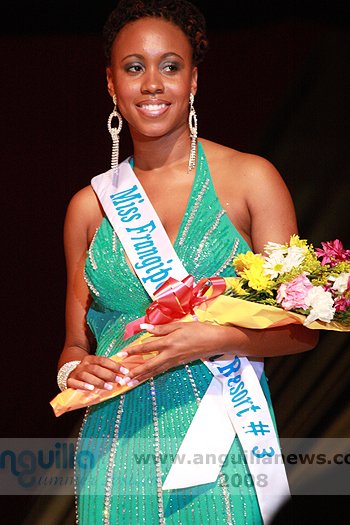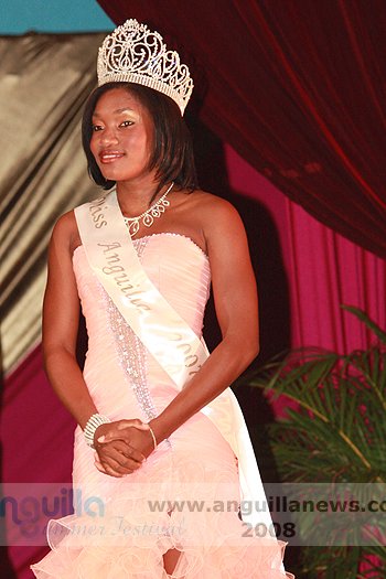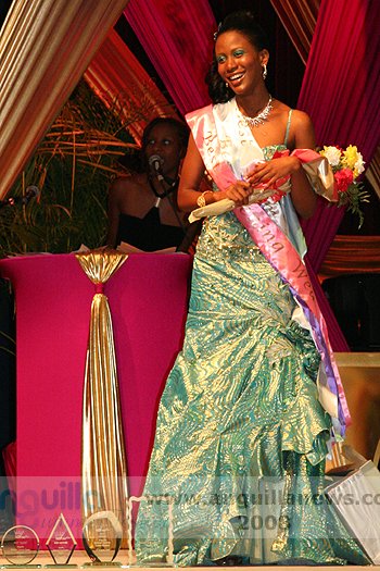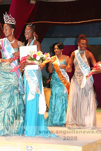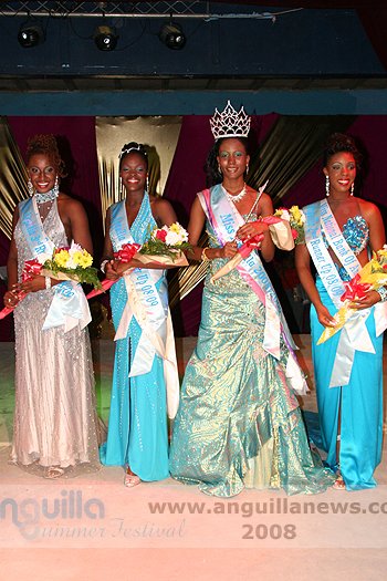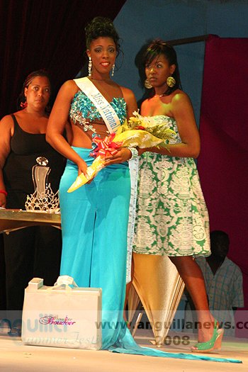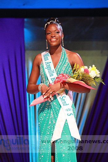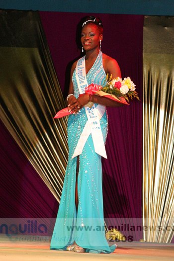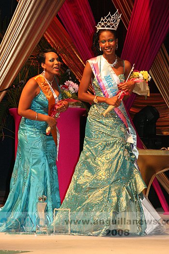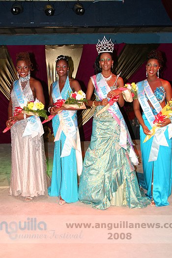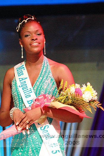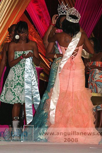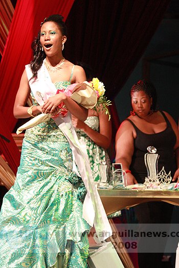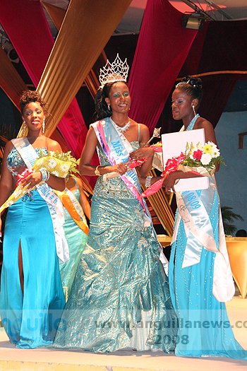At the end of the night (approx 2:00 a.m.), Ms. Fanny Richardson was crowned the 2008 Miss Anguilla Pageant Queen, with a total of 1,081 points. Ms. Kericia Barry was adjudged 1st Runner Up with 978 points, Ms. Kendisha Hall 2nd Runner Up with 926 points and Ms. Curlee Gumbs 3rd Runner Up with 918 points.