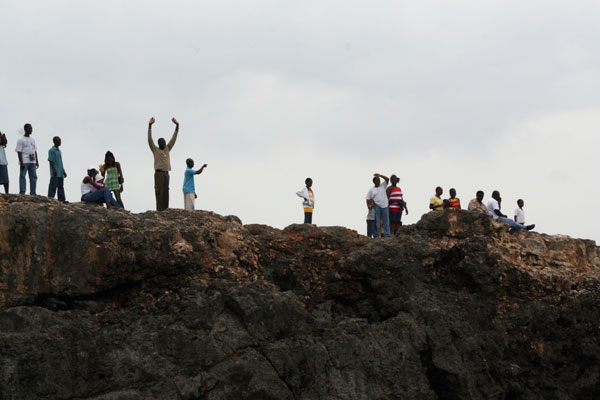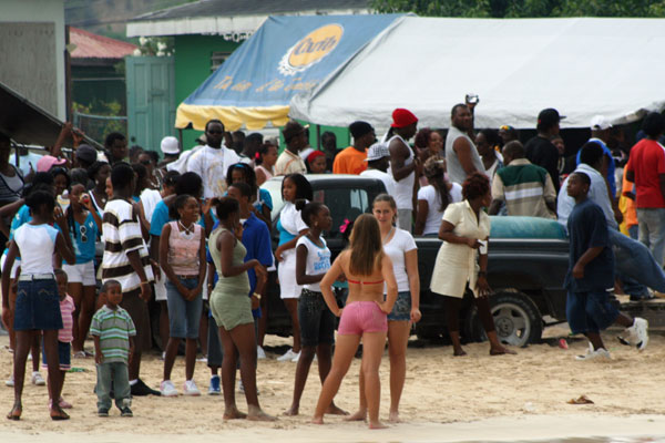 Look carefully at the vibrant spectators on the coast,